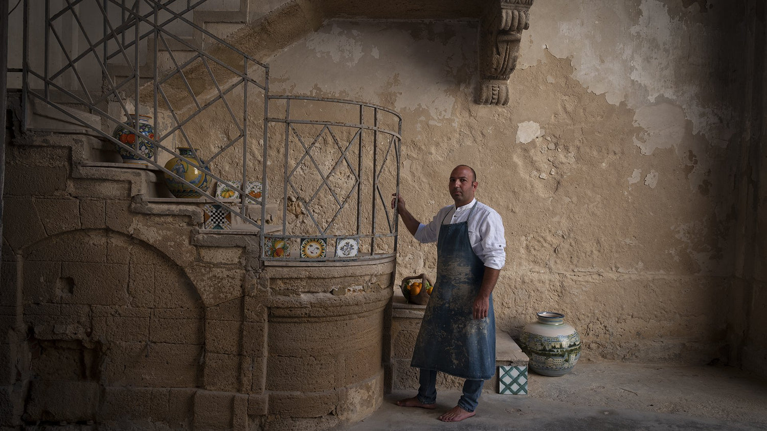 Our beautiful Sicilian ceramics, used in our spas and retail spaces, are created by a ceramicist in Sciacca, 15 minutes from our organic farm. The clay is mined from the Sicilian mountains and valleys, molded by hand, and dried in the sun before being painted in ornate motifs.