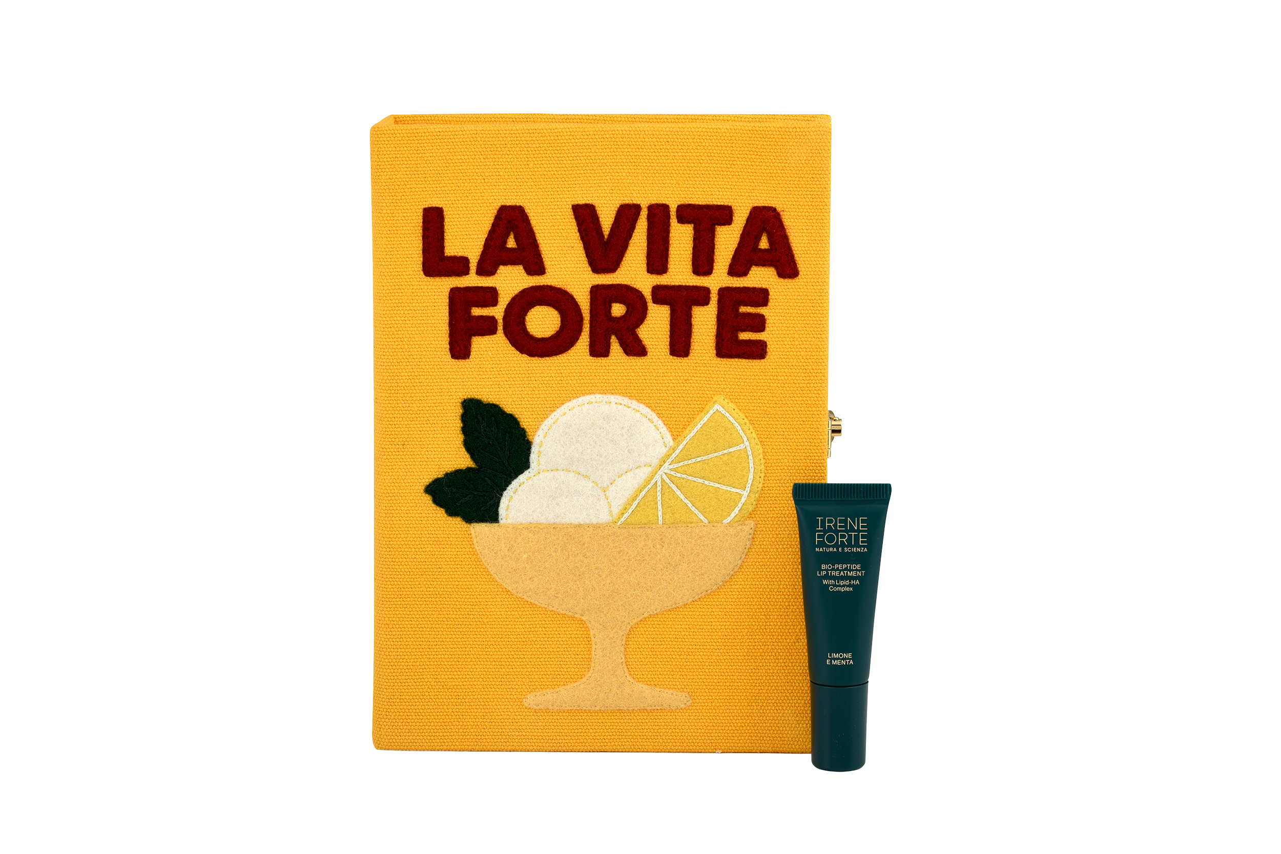Parisian maison Olympia Le-Tan, celebrated for transforming cultural icons into hand-embroidered objets d’art, has created a limited-edition Limone e Menta sorbet clutch - inspired by Irene Forte Skincare’s Sicilian heritage and meticulously appliquéd and embroidered. Playful yet timeless, this piece is designed to be collected and cherished.