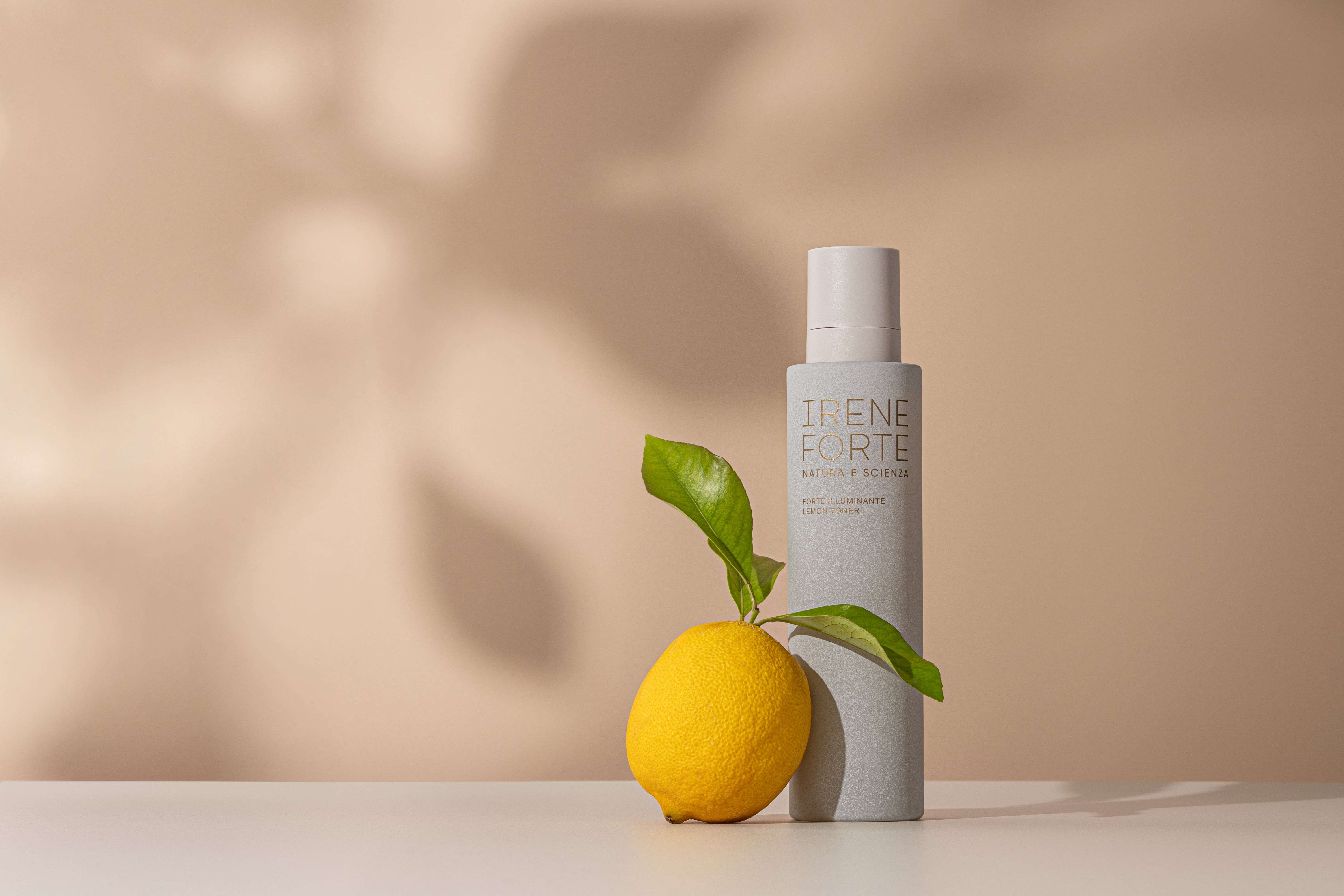 Irene Forte lemon toner bottle and packaging on a white background